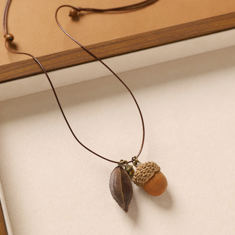 复古风文艺天然植物果实项链森系简约编织长款干果毛衣链橡果吊坠