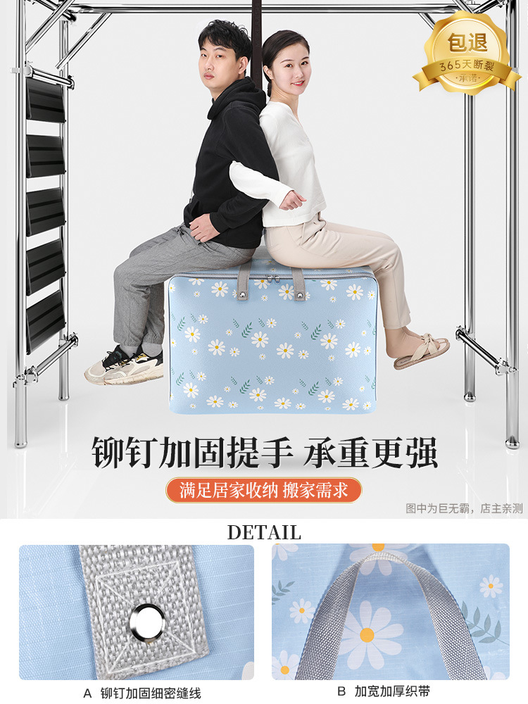 | 颜色 | 天空蓝【双层加厚款】铆钉加固/双面防水 | 尺寸 | 【中号】55*20*33 ️可装3床空调被 |