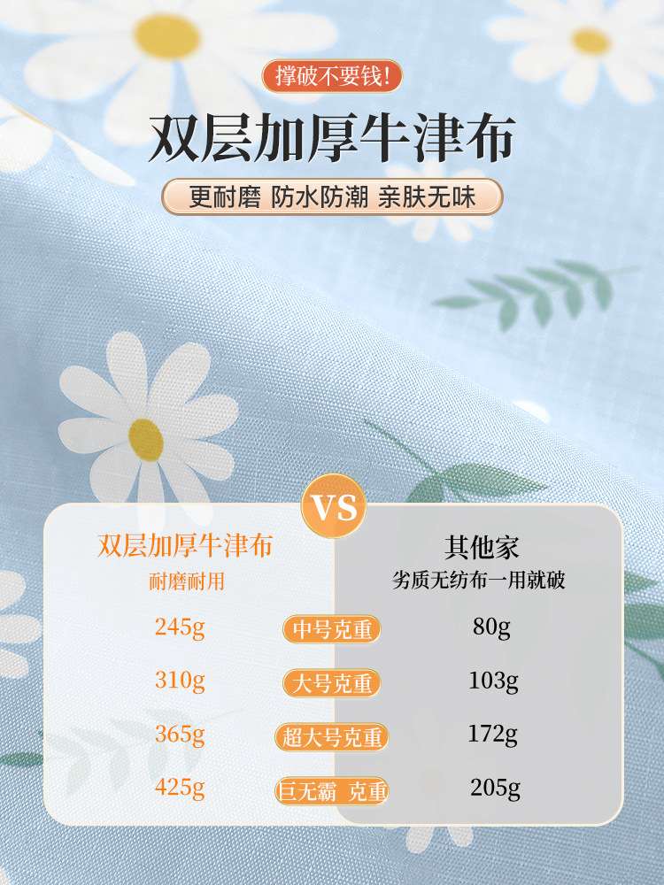 | 颜色 | 天空蓝【双层加厚款】铆钉加固·双面防水 | 颜色 | 浅杏黄【常规加厚款】耐磨耐用·里布防潮 |