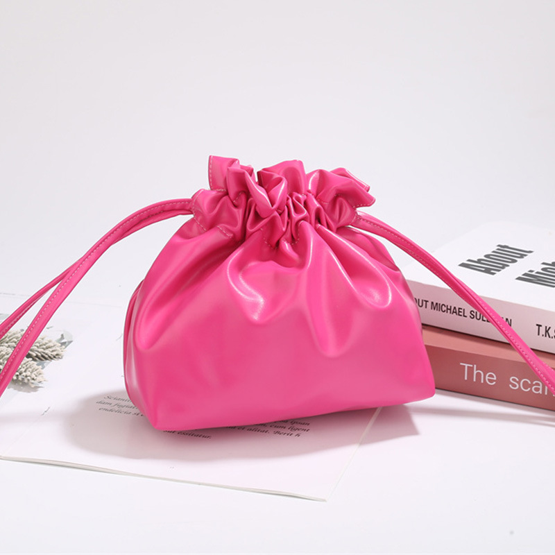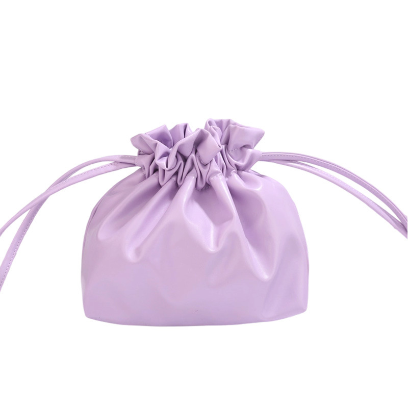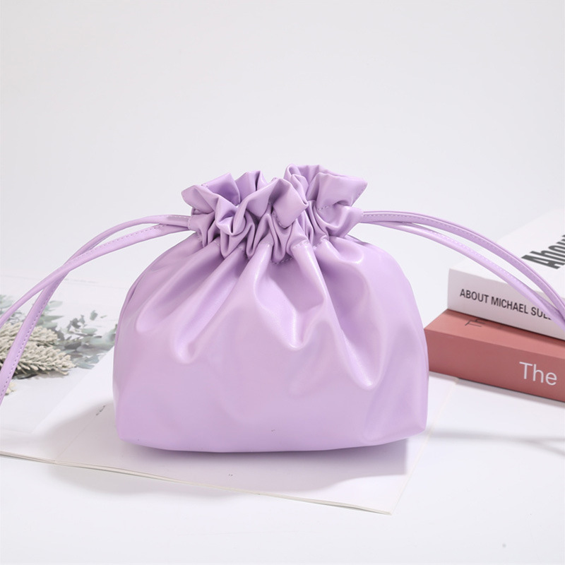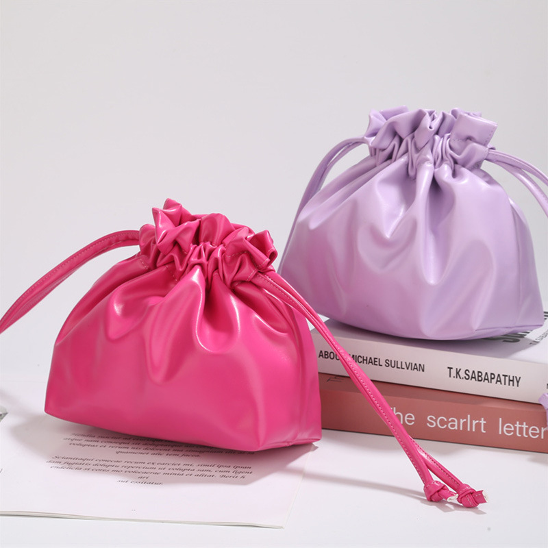 新款简约抽绳化妆包高级感格子收纳包大容量PU束绳袋女化妆包
