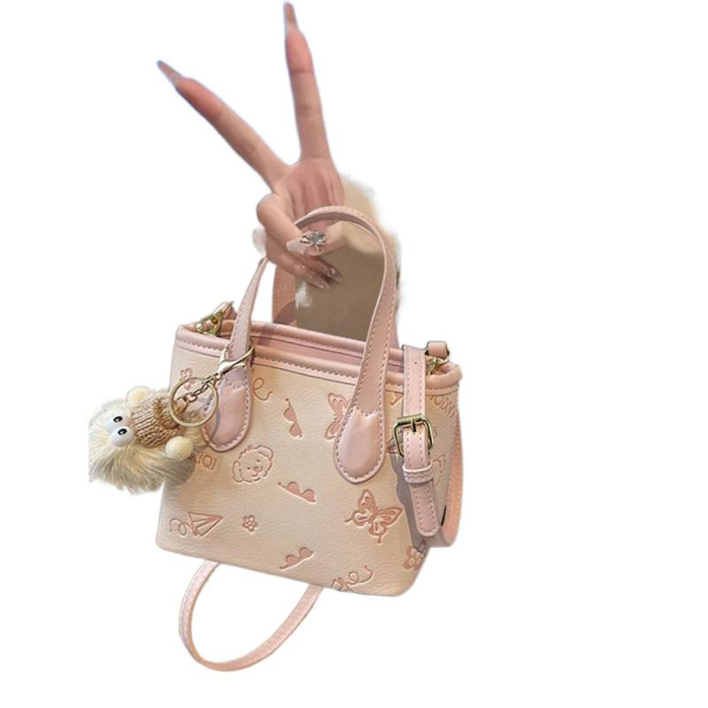 粉色水桶包包女新款大气小个子感轻奢超火小众斜挎粉色无挂件其他