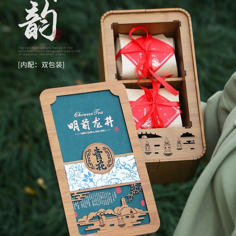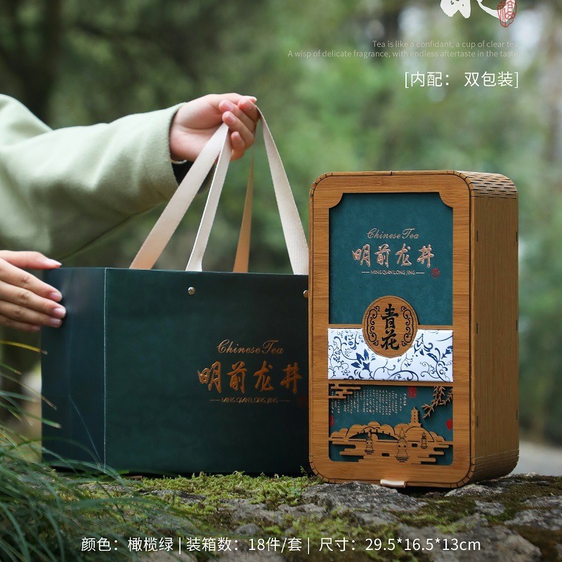 青花韵明前龙井系列高档茶叶礼盒空盒新款春茶绿茶包装盒空礼盒子