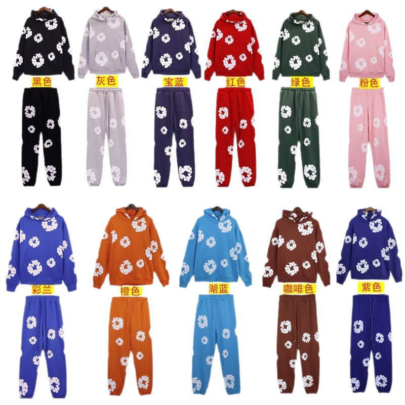 跨境春秋季情侣套装卫衣长裤加绒卫衣DENIM 主线木棉花美式连帽衫