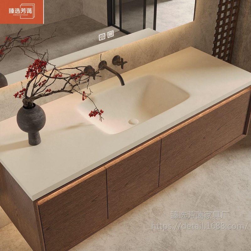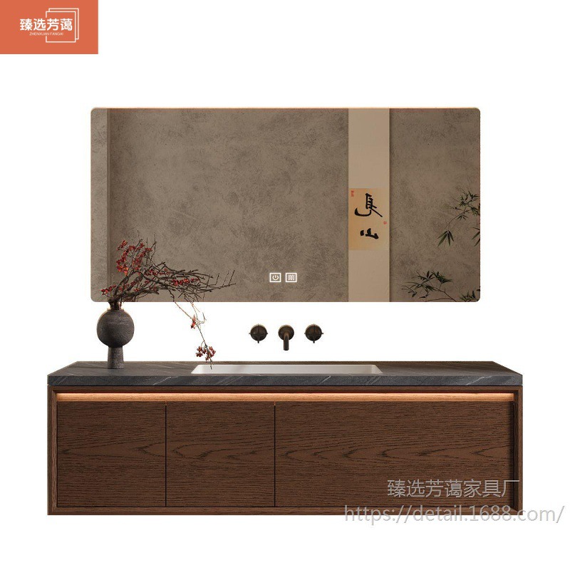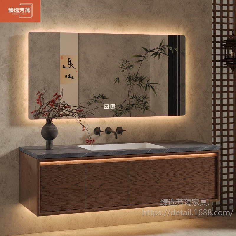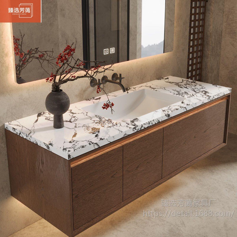 臻选中古风红橡木浴室柜组合智能岩板热弯一体卫生间洗漱台洗手盆
