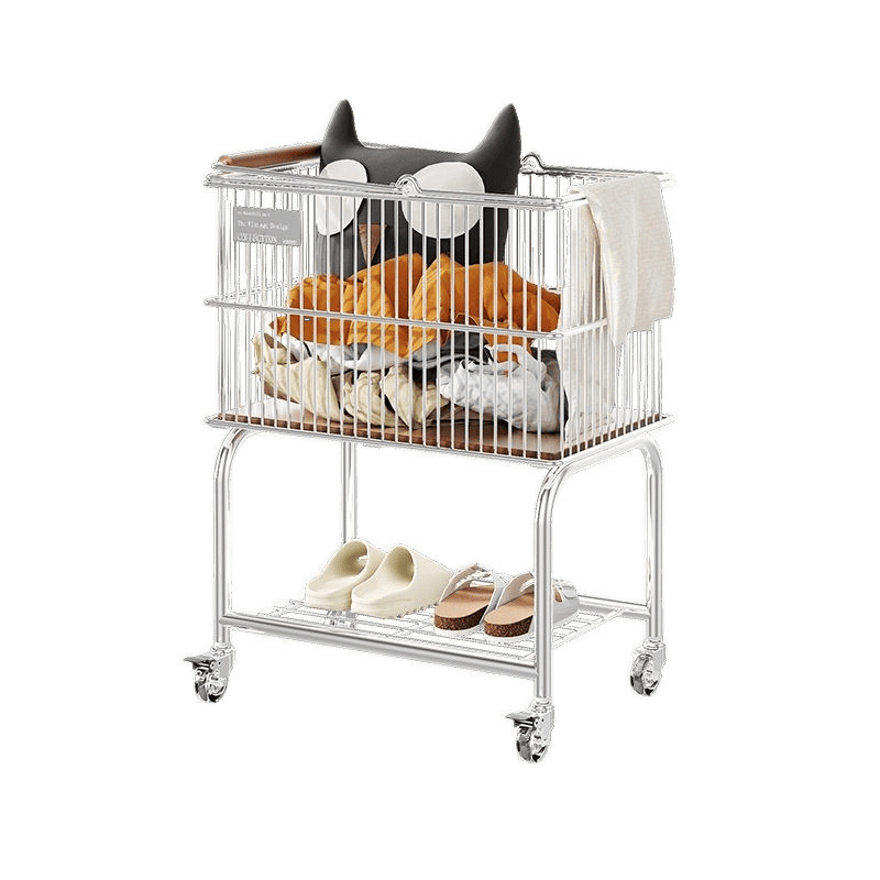 中古风收纳小推车置物架家用脏衣篮卫生间浴室衣服收纳筐洗衣篮子