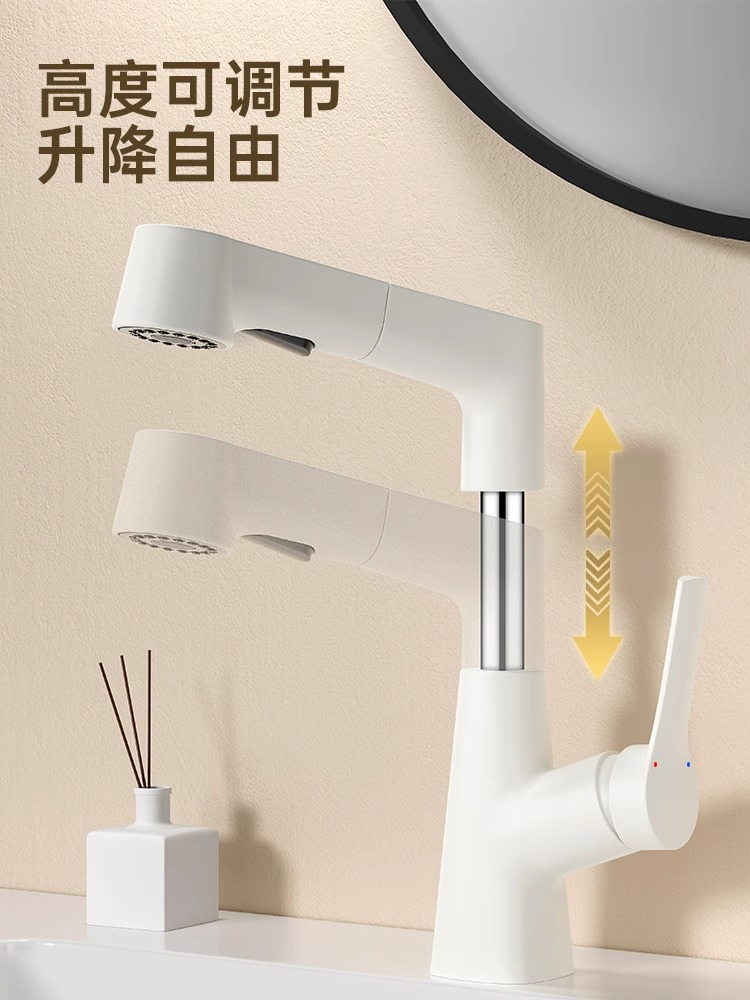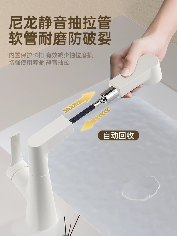 | 规格 | 【水镀灰】升降抽拉面盆龙头+60CM冷热进水管 | 规格 | 【奶白色】升降抽拉面盆龙头 |