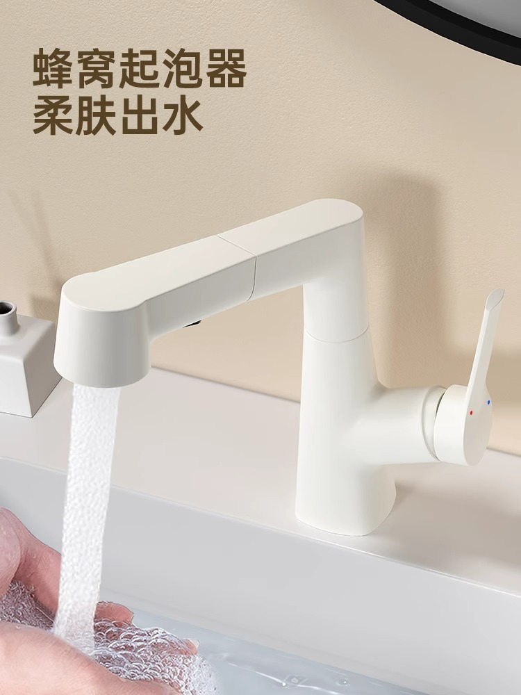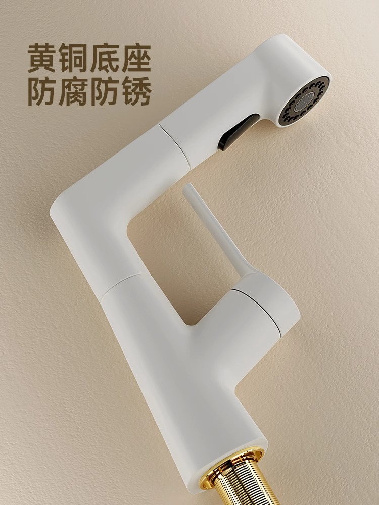 | 规格 | 【白色】升降抽拉面盆龙头+60CM冷热进水管 | 规格 | 【奶白色】升降抽拉面盆龙头+60CM冷热进水管 |
