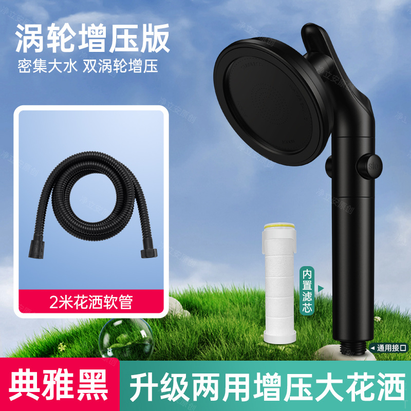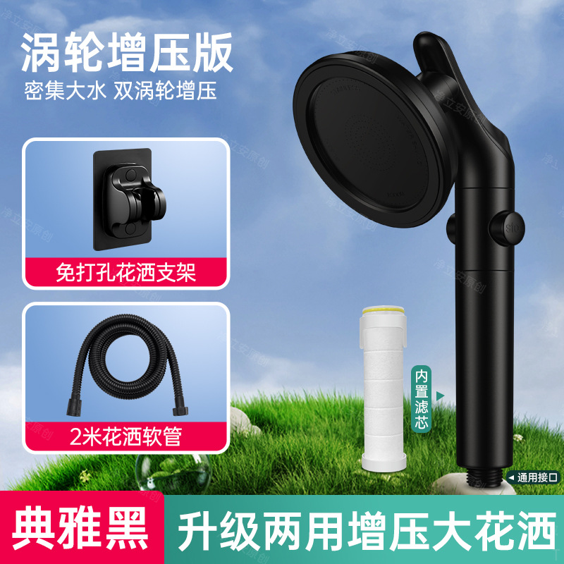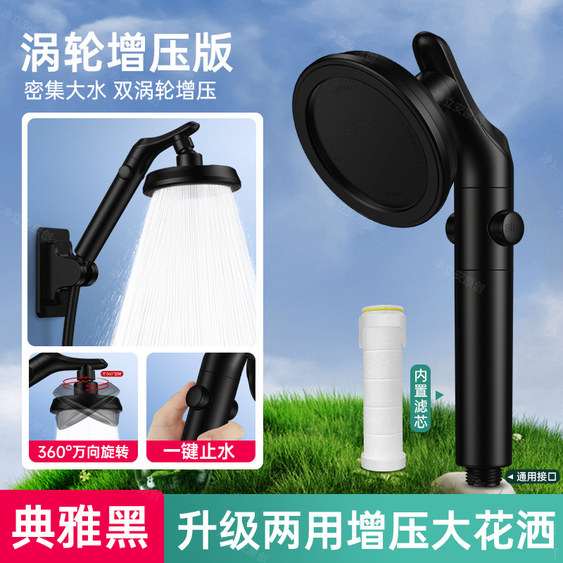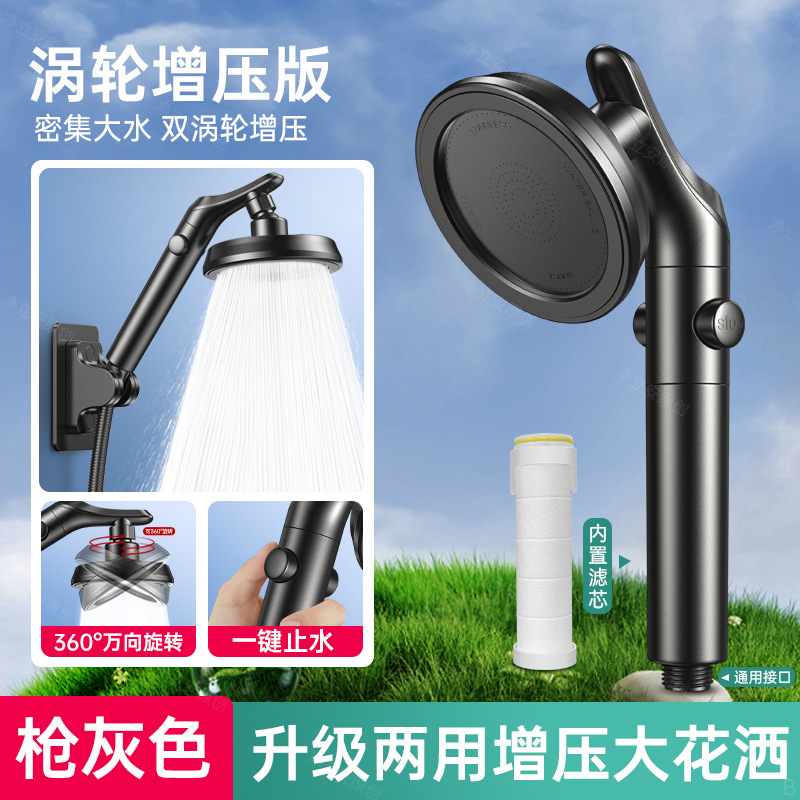 | 规格 | 【典雅黑】升级加大★可弯头超增压花洒★加厚防摔 | 规格 | 【枪灰色套装1】弯头超增压花洒+1.5米防爆软管 |
