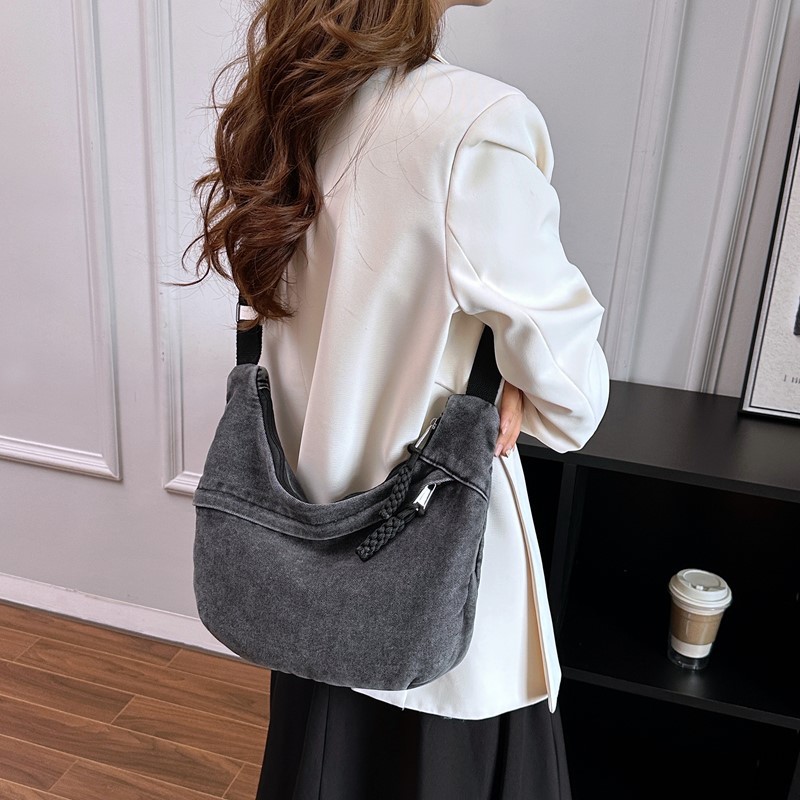跨境新款牛仔斜挎包女包2025新款大容量饺子包女士韩版通勤单肩包