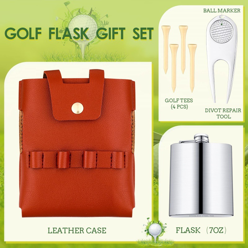 现货 皮革高尔夫球酒壶球钉套 果岭叉球标叉皮套 不锈钢酒壶套