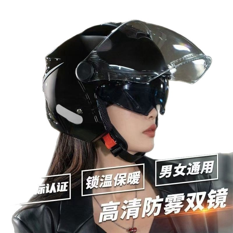 国标3C认证电动车头盔男女冬季双镜保暖半盔四季通用摩托车安帽无