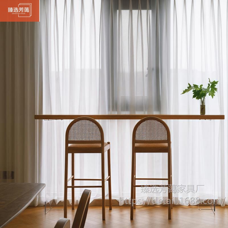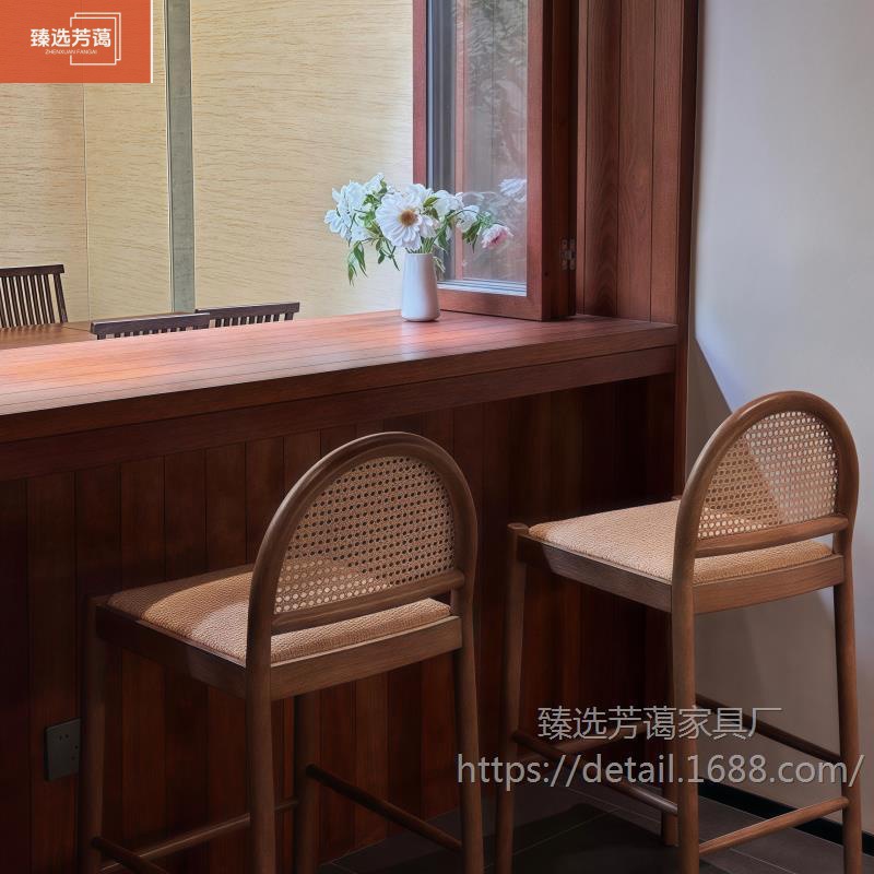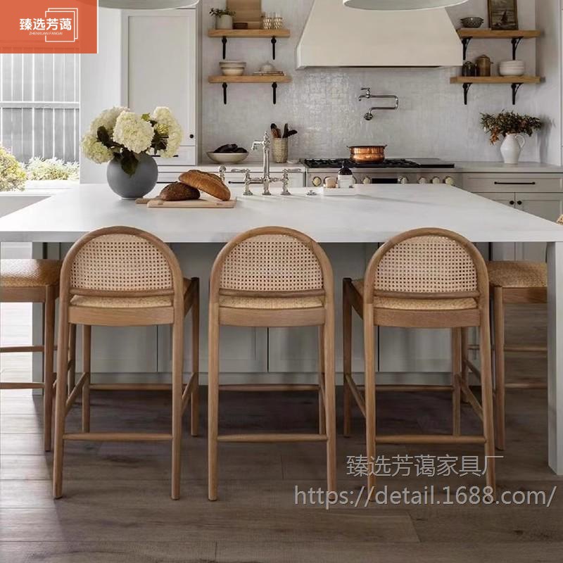 臻选藤编吧台椅简约酒吧椅家用岛台椅侘寂风吧台高脚凳前台高脚椅