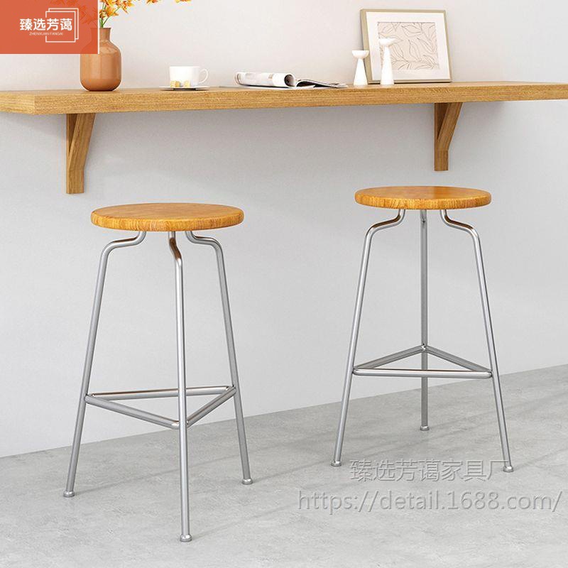 设计师吧台椅铁艺高脚吧台实木日式前台酒吧椅北欧蚂蚁凳臻选简约