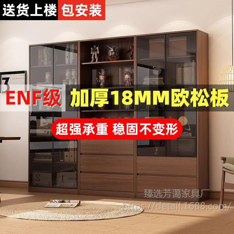臻选实木书柜书房储物柜组合办公室文件柜落地展示柜一体收纳柜