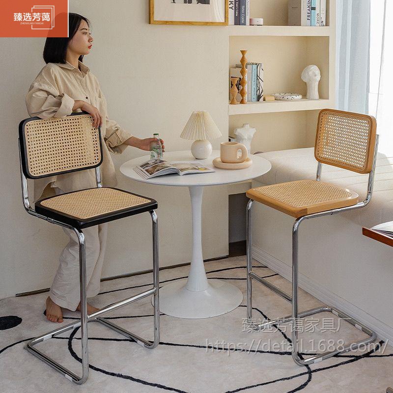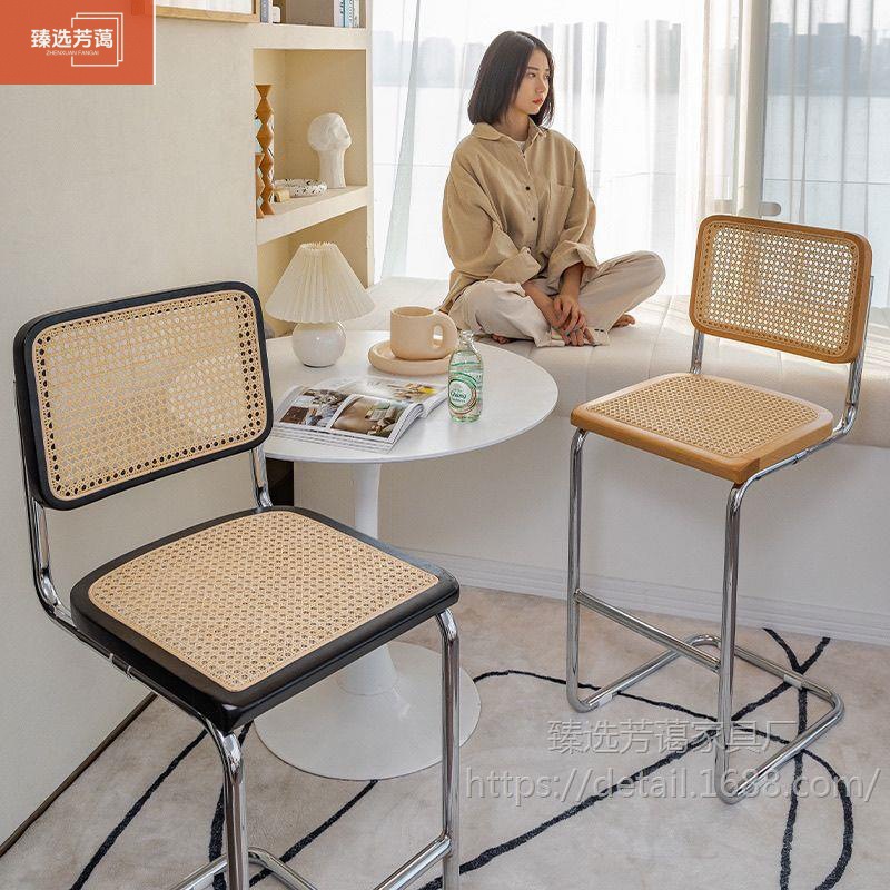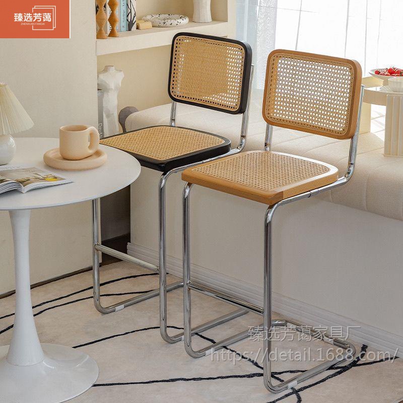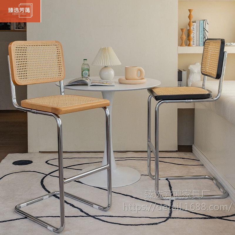 北欧实木藤编吧台椅臻选高脚凳简约吧椅复古酒吧椅前台高椅子吧凳