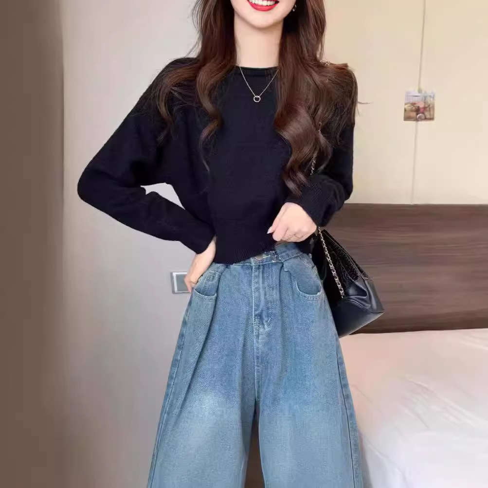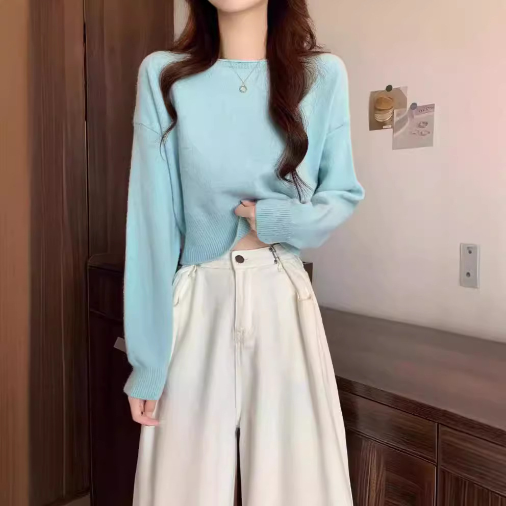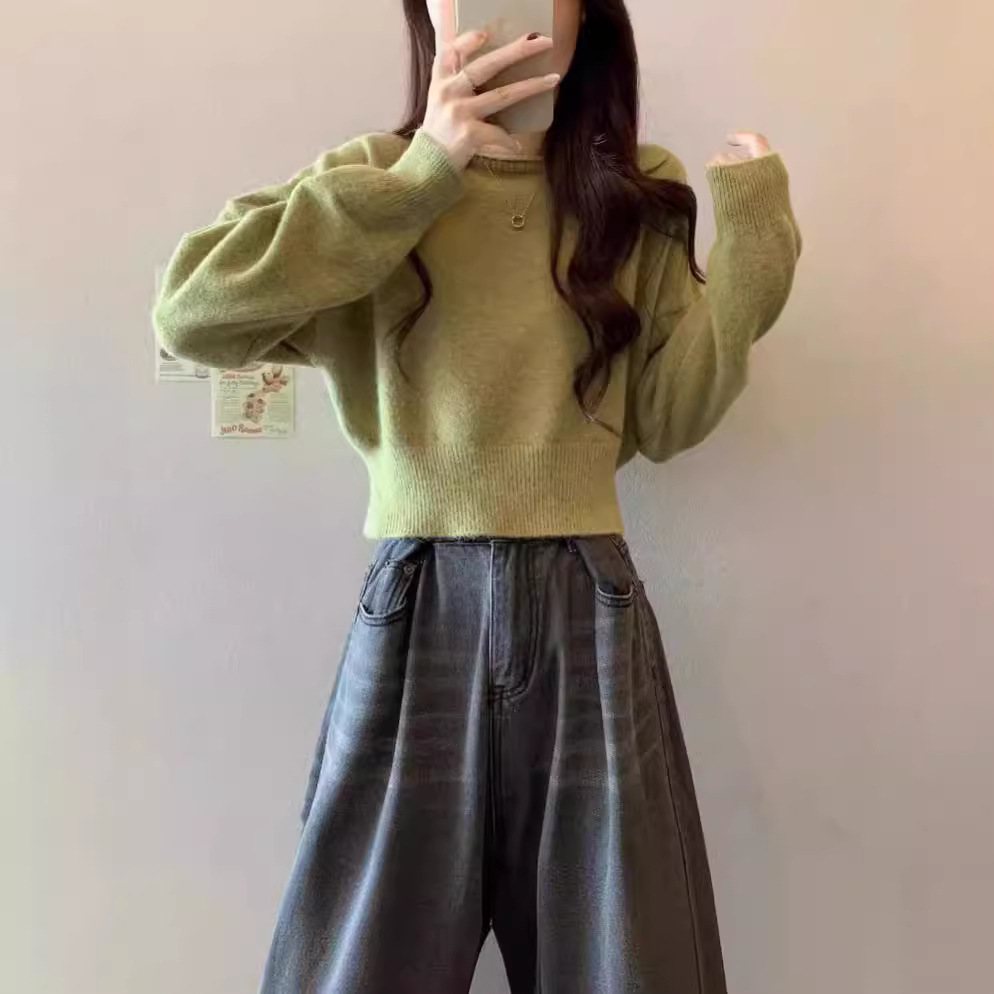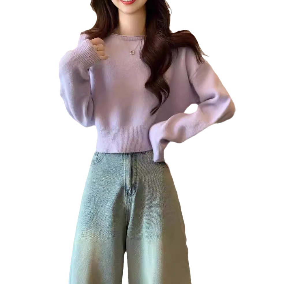 新款时尚百搭软糯短款时尚毛衣女纯色针织衫长袖2024秋冬季新款上