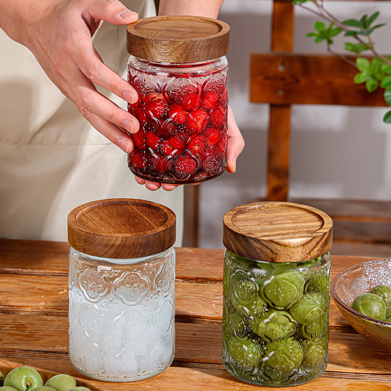 青梅储物罐螺纹口复古浮雕海棠花密封罐五谷杂粮储存罐食品茶叶罐