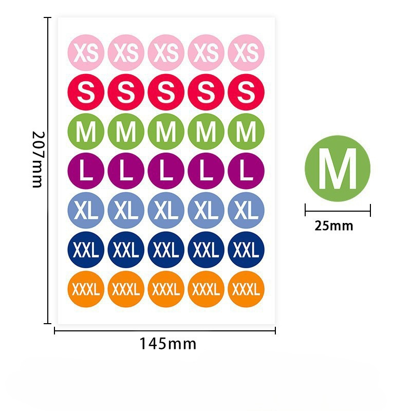 | 规格型号 | 黑色尺码贴纸/一包 | 规格型号 | 彩色尺码贴纸 S (500张/卷) |