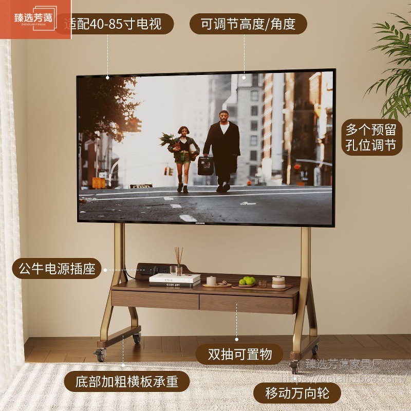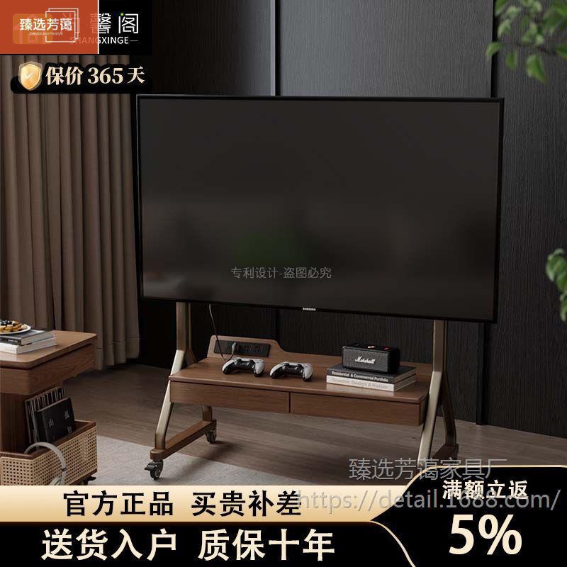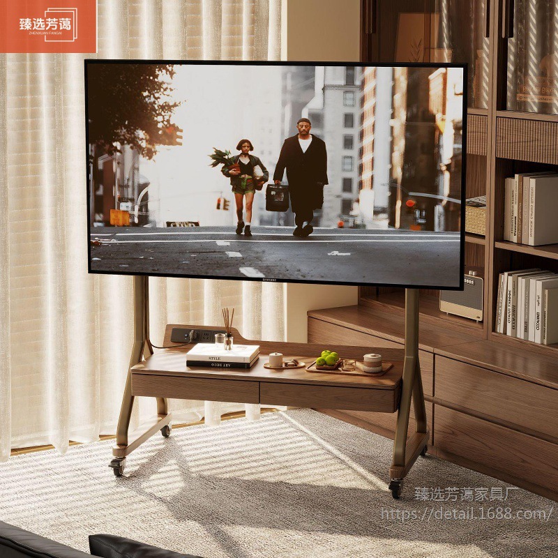 臻选实木可移动电视柜客厅家用小户型现代简约落地储物电视支架