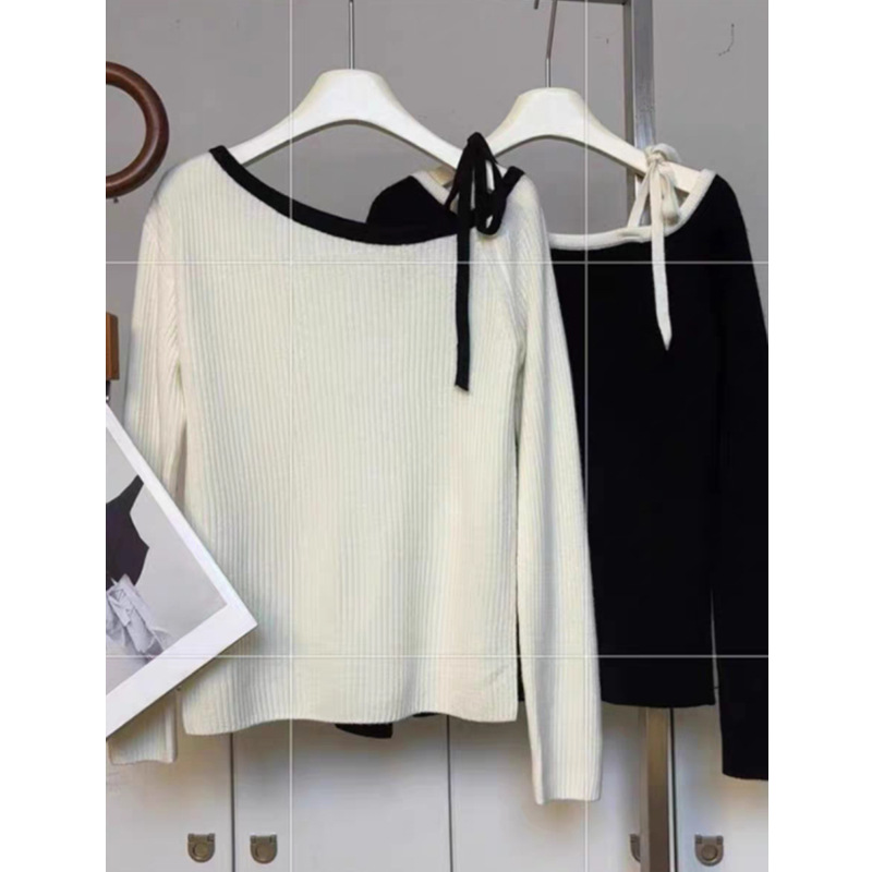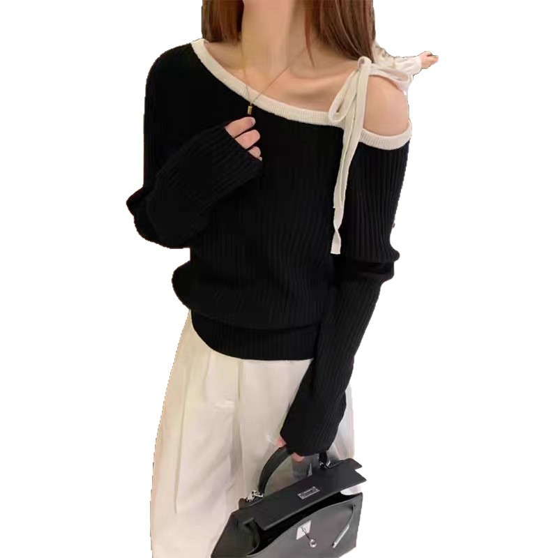 韩系简约温柔气质露肩针织毛衣女欧洲站2025早秋新款显瘦女