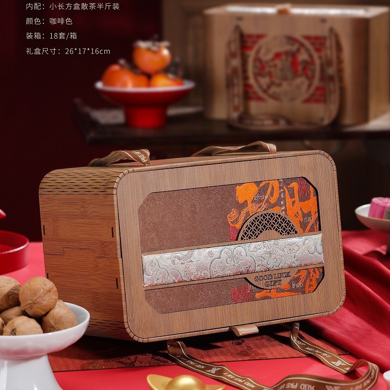 新款招财进宝创意手提竹木盒茶叶散茶包装盒