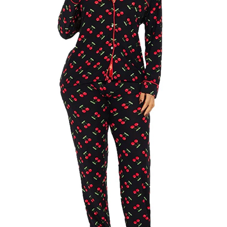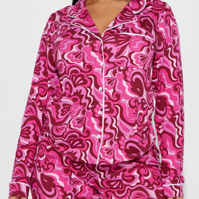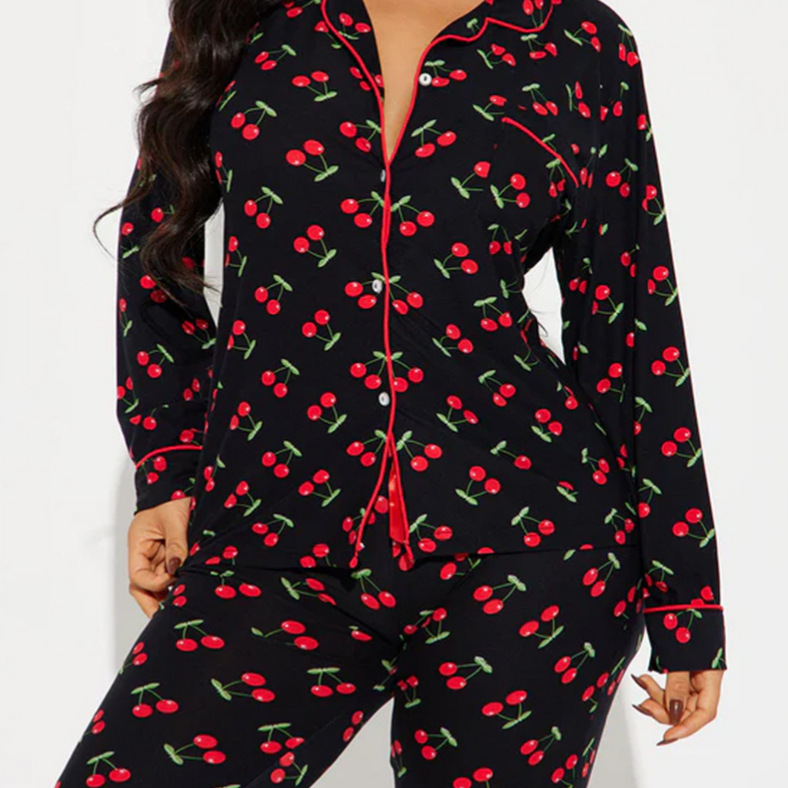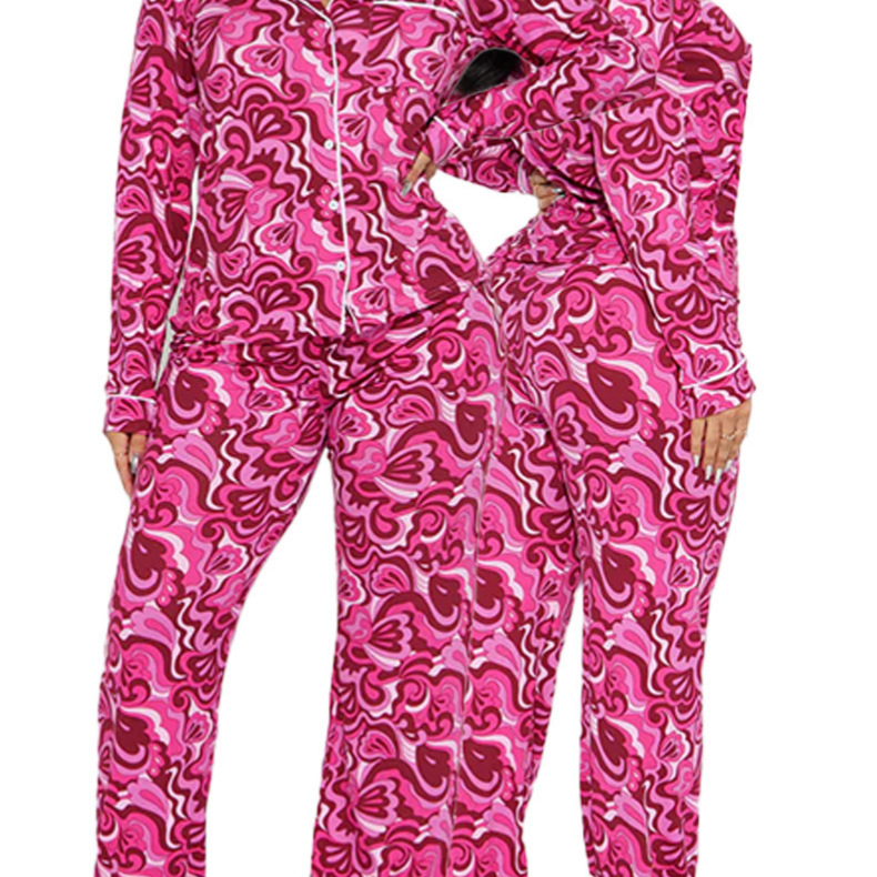 欧美跨境热销亚马逊2025春季女装休闲印花家居长袖长裤单排套装.