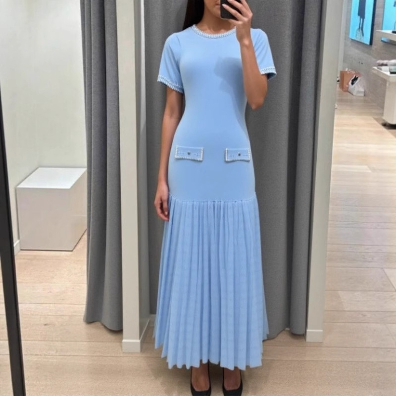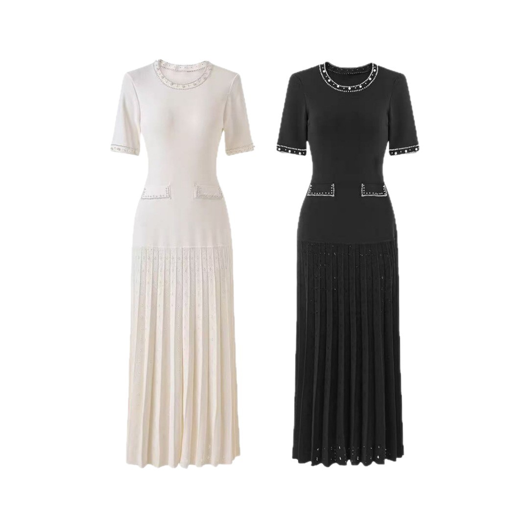 | 2 | 南油欧美法式优雅重工珍珠中长款短袖针织镂空长裙连衣裙 | 3 | 2025法式短袖中东风长裙重工钉珠小圆领收腰名媛范气质针织连衣裙 |