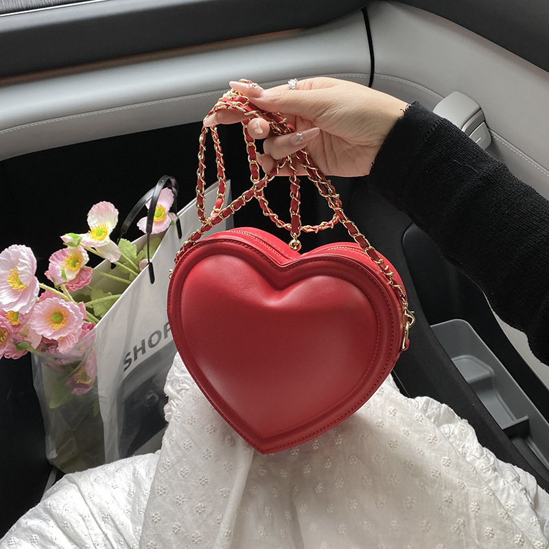 跨境小清新洋气心型单肩斜挎包mini秋季时尚新款糖果色链条小包包