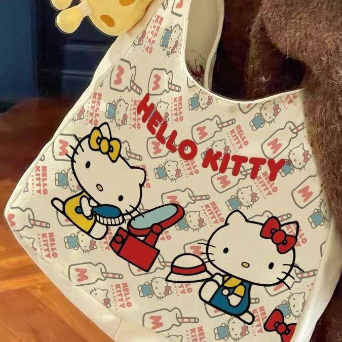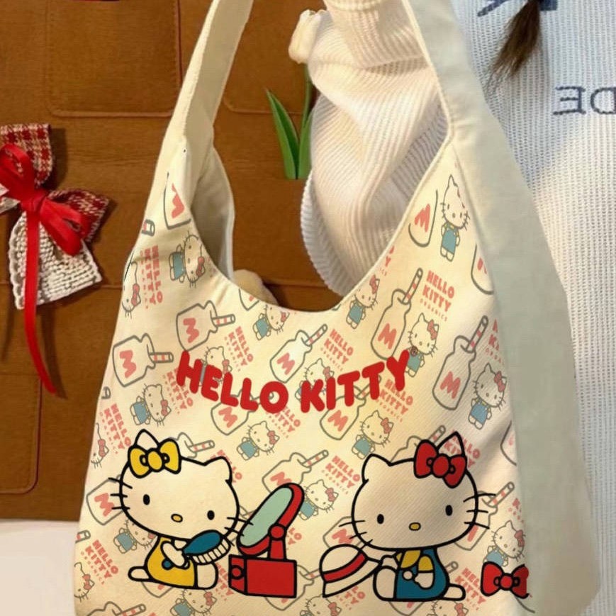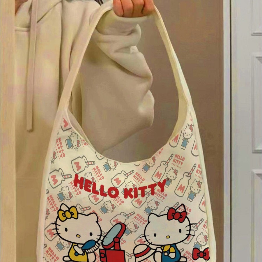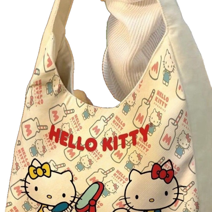 百搭大容量单肩帆布包卡通小猫2025新款学生开学通勤实用托特包