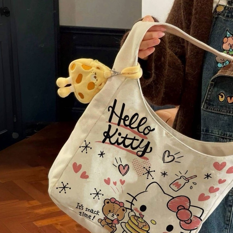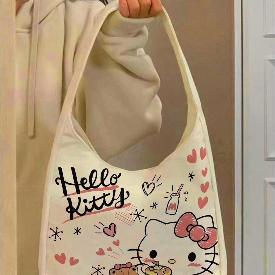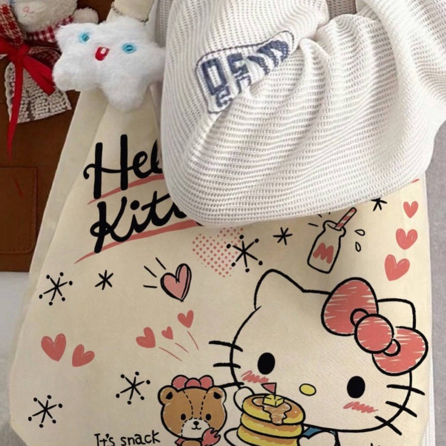 新款hellokitty单肩包百搭大容量帆布包学生通勤托特包外出礼品包