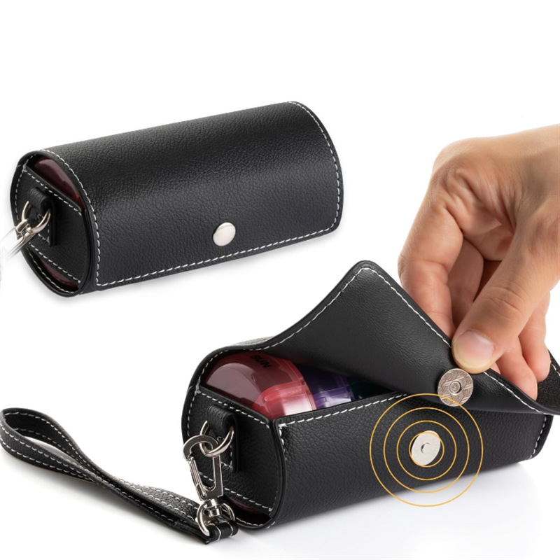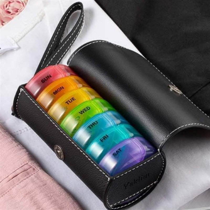 外贸热销AMPM每天2次大号药片收纳盒 PU皮盒圆形旅游7天药盒
