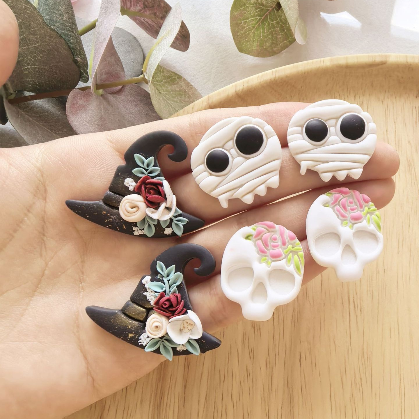 跨境万圣节系列骷髅头女巫帽软陶耳饰模具高精度切模clay cutter