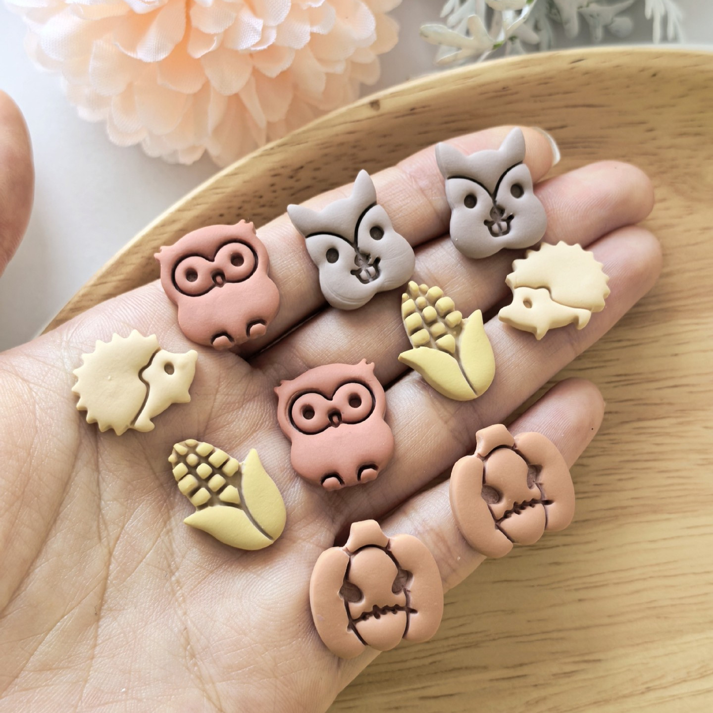 跨境秋天主题迷你玉米刺猬猫头鹰松鼠软陶耳饰模具 clay cutters
