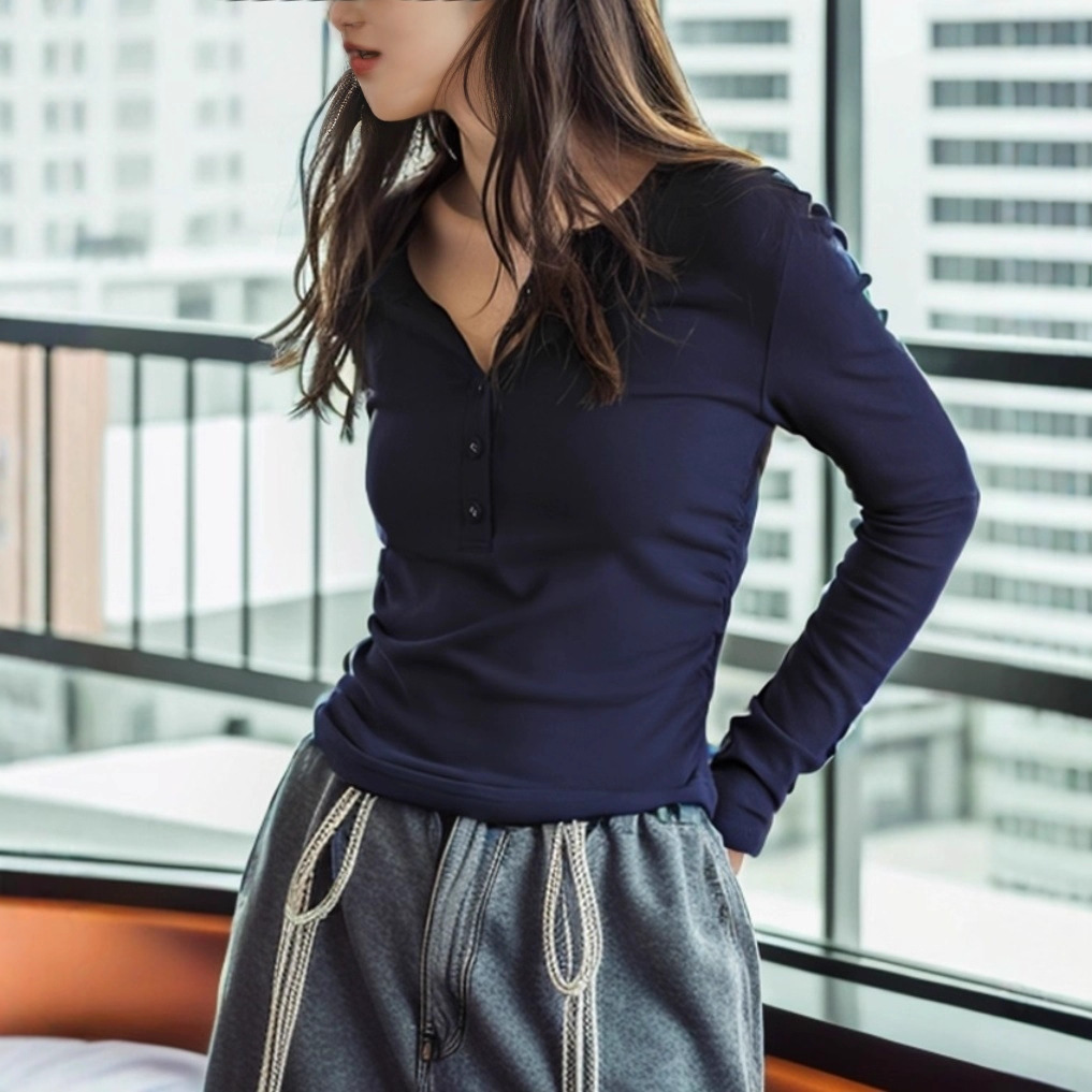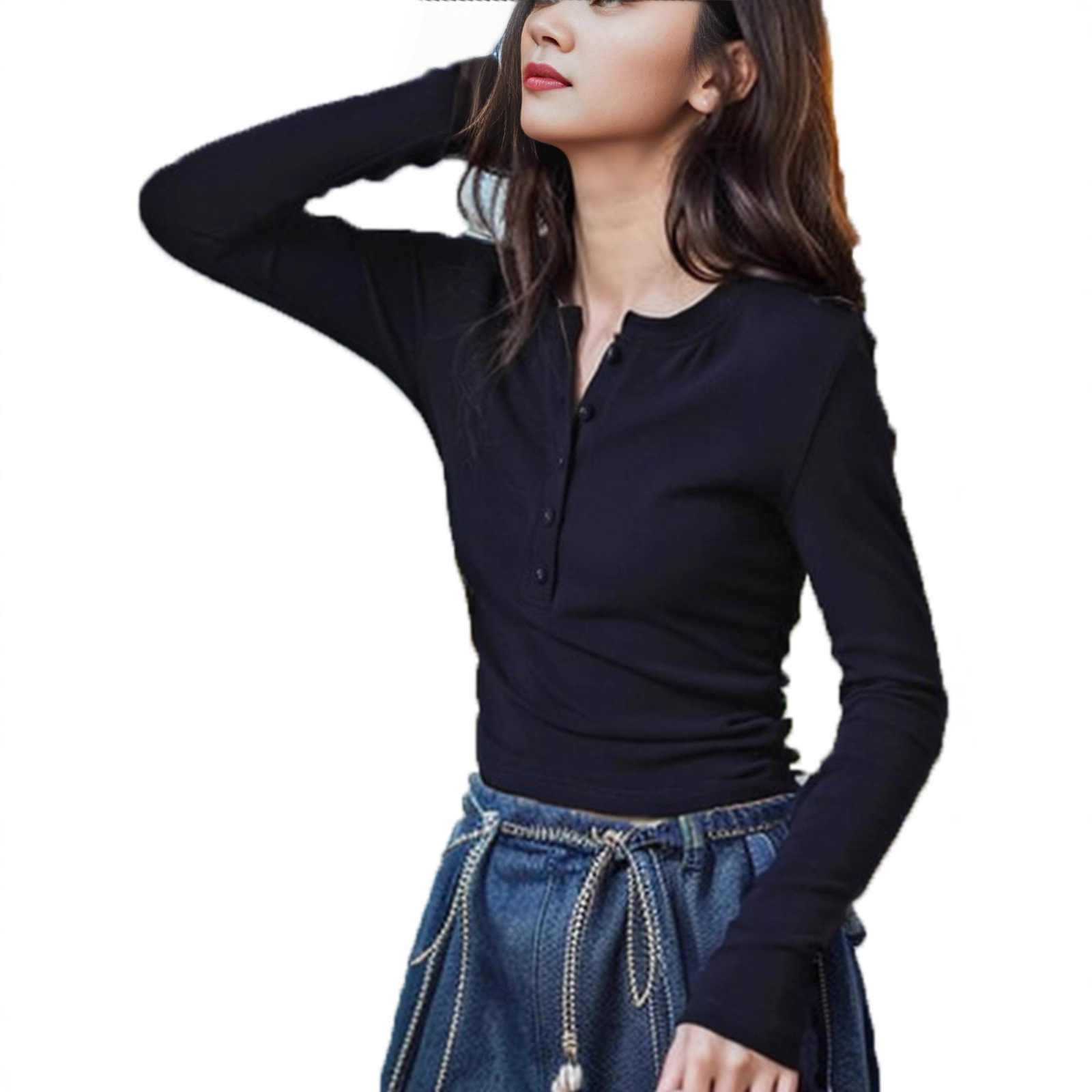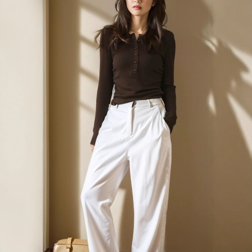 骨感!美拉德风长袖棕色打底衫T恤女显瘦内搭薄绒上衣
