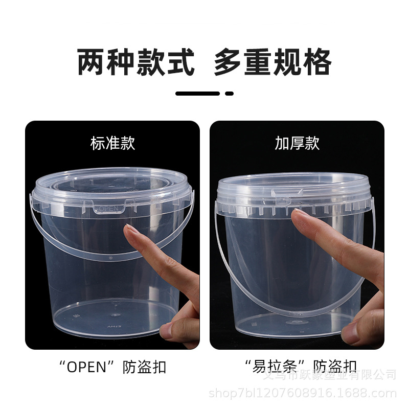| 规格型号 | 5L易拉扣特厚;透明色;圆桶 | 规格型号 | 5L易拉扣特厚;白色;圆桶 |