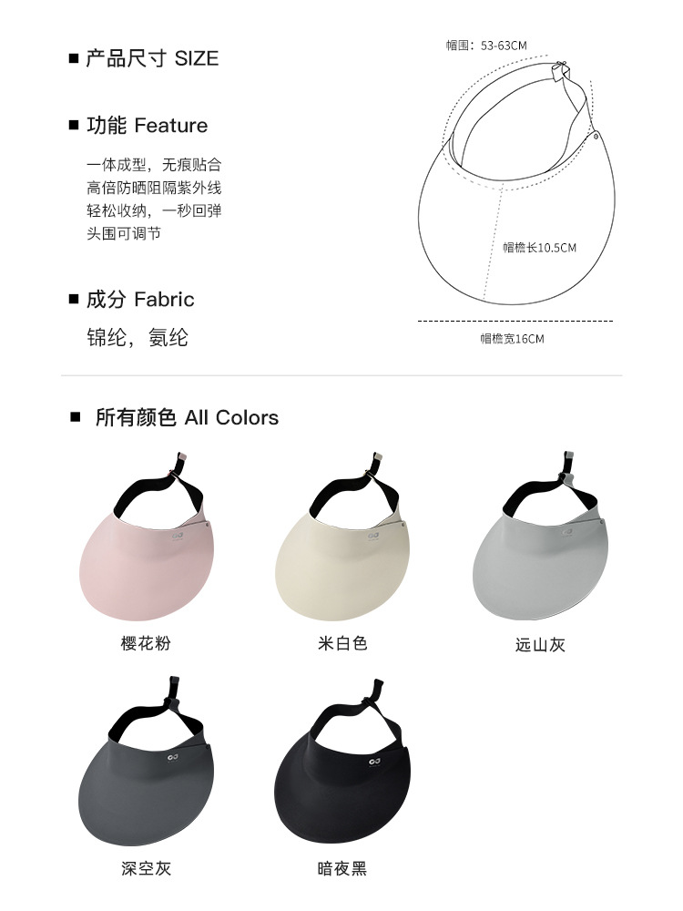 | 尺寸 | 【均码】可调节松紧-深空灰【轻盈收纳】适用大小头围 | 尺寸 | 【均码】可调节松紧-暗夜黑【轻盈收纳】适用大小头围 |