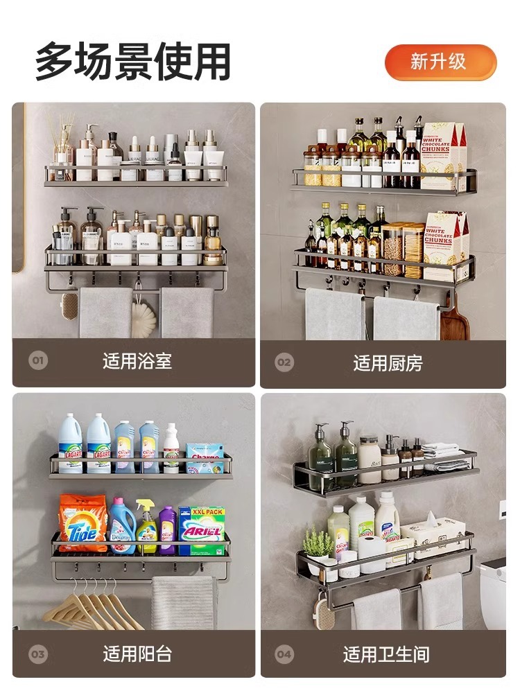 | 尺寸 | 顶配吸盘款【枪灰色60cm双层】带杆带钩 | 尺寸 | 顶配吸盘款【枪灰色50cm双层】带杆带钩 |