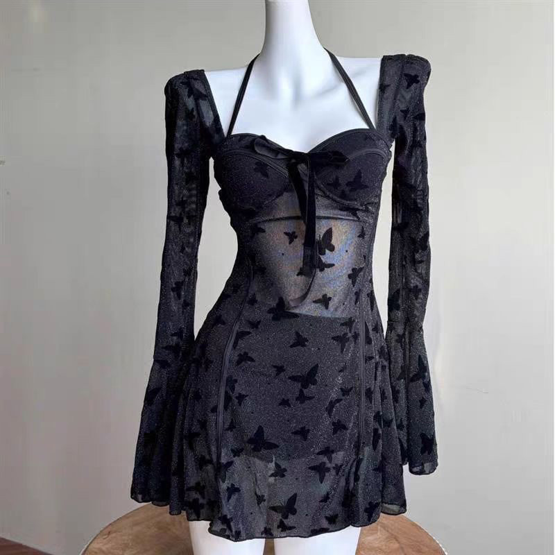 跨境韩系透视纯欲性感裙式分体泳衣钢托聚拢遮肚温泉沙滩度假泳衣