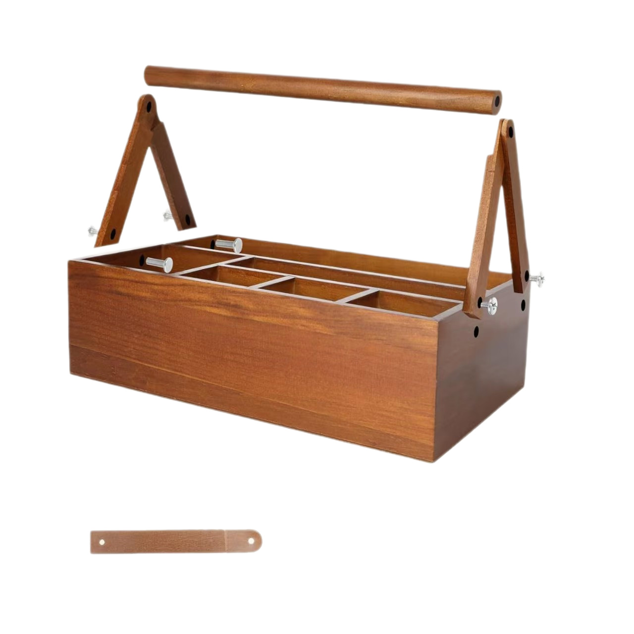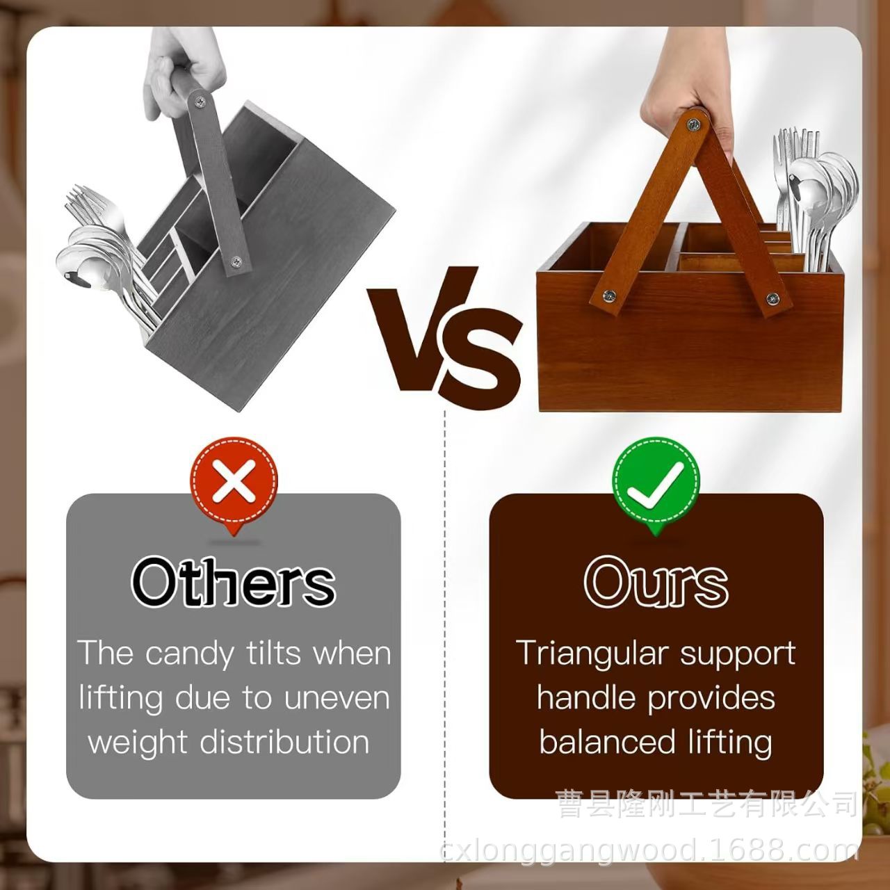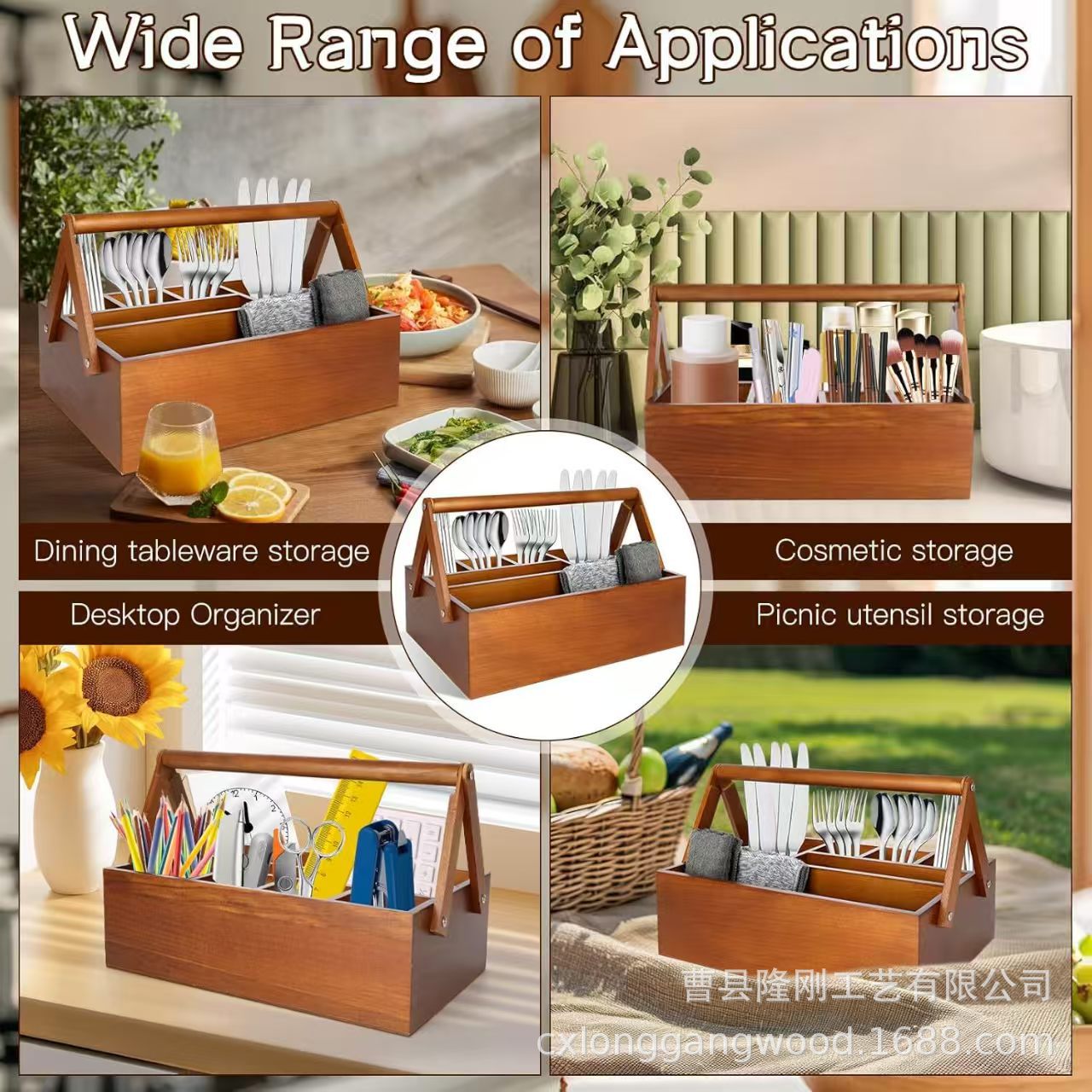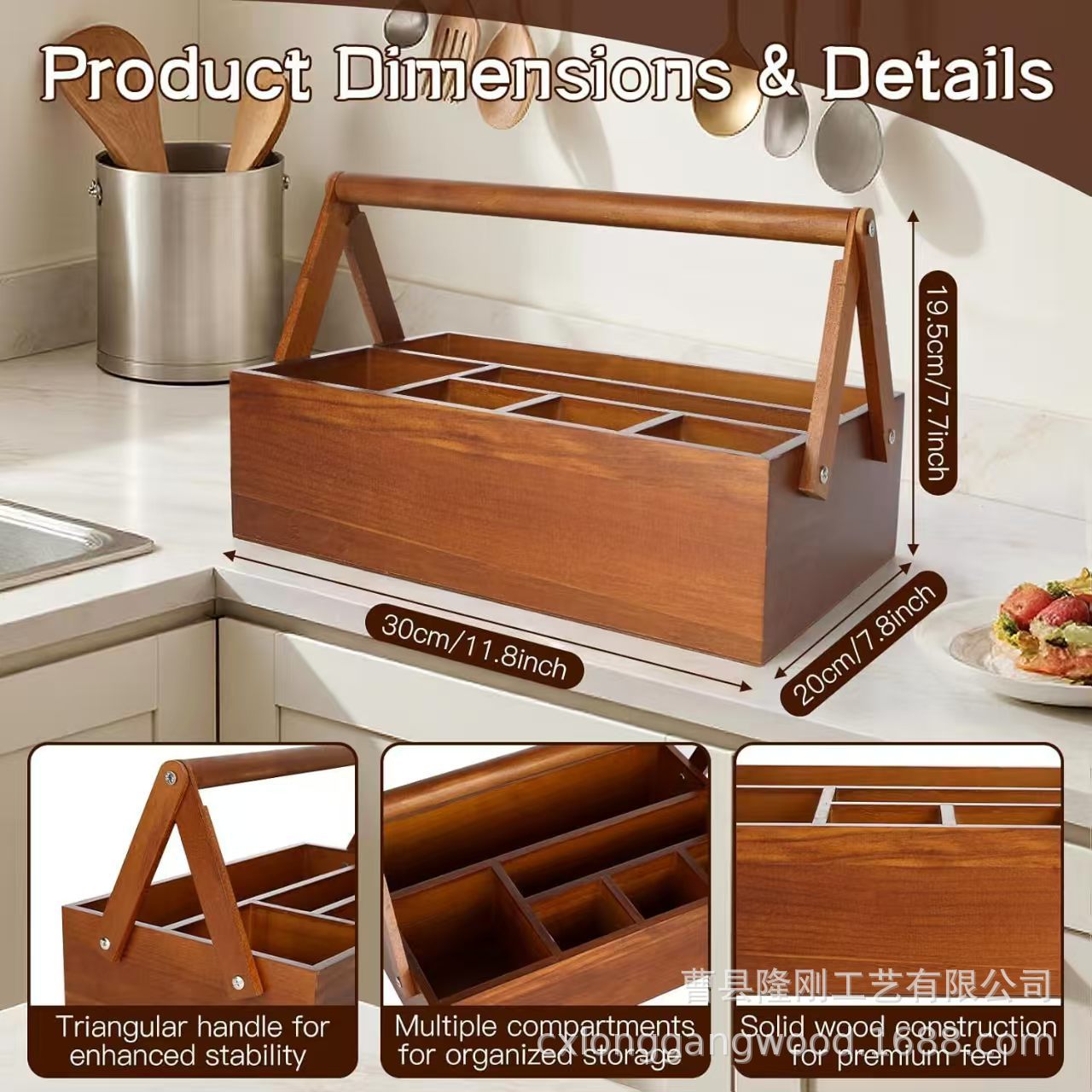 木质手提式餐具收纳盒厨房多格刀叉勺子整理盒实木厨房桌面储物盒