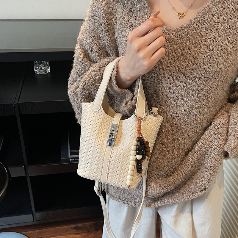 跨境大容量秋季新款编织水桶包单肩女士时尚手提斜挎包百搭小众便