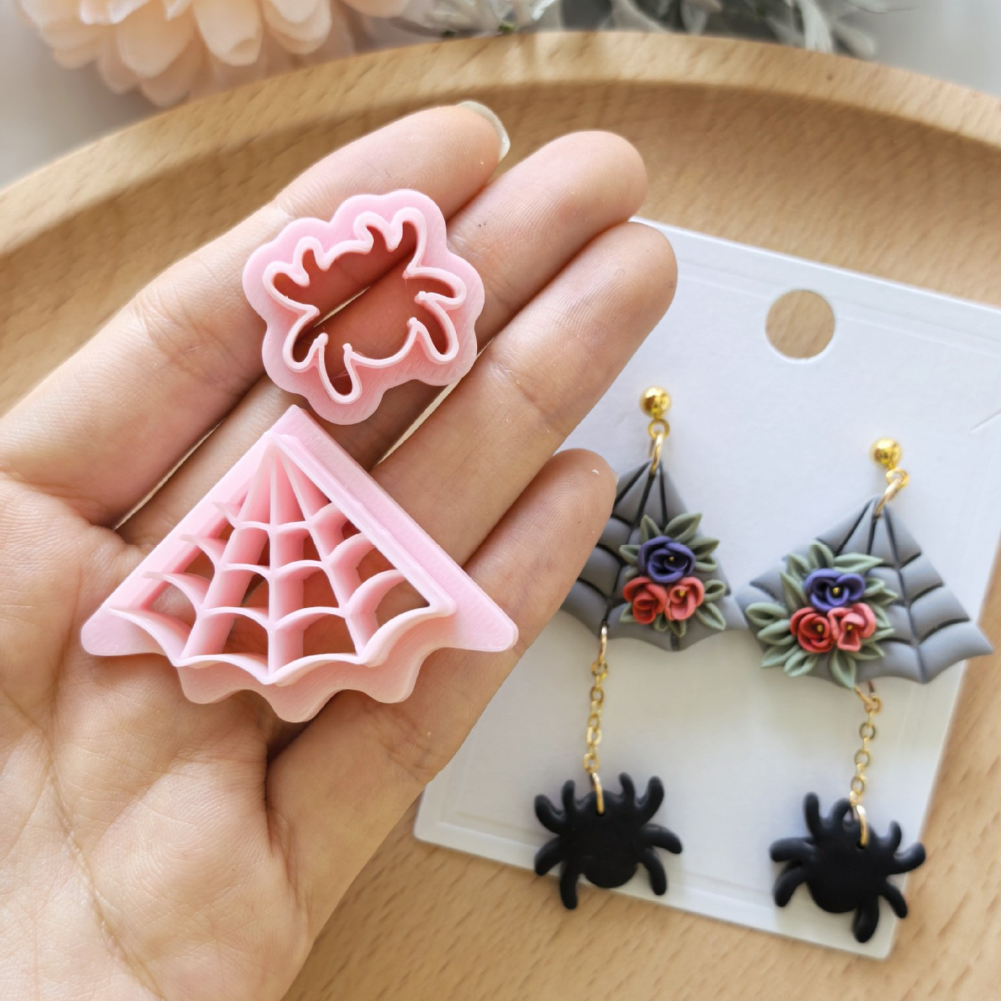 跨境万圣节系列蜘蛛蛛网软陶粘土模具耳饰 polymer clay cutters