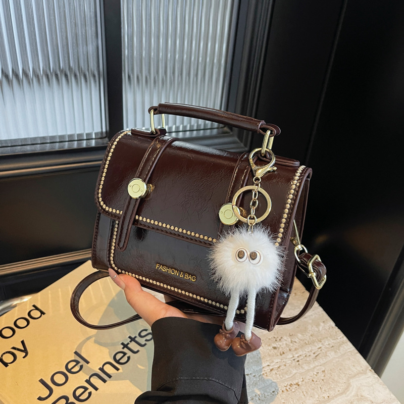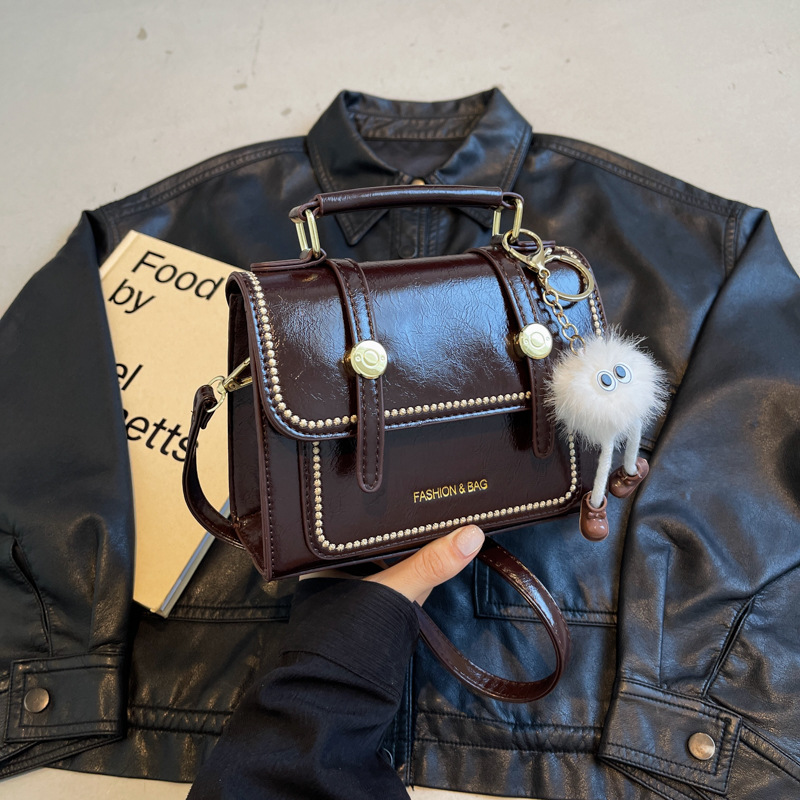 跨境复古简约小包包女秋冬新款手提小方包高级质感百搭通勤斜挎包