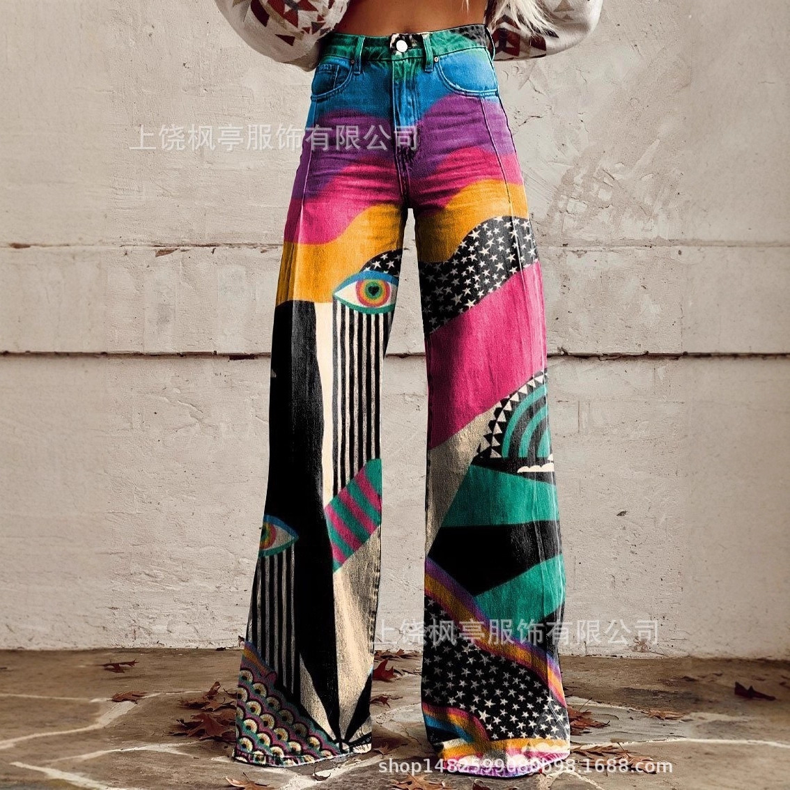 爆款外贸跨境速卖通ebay欧美外贸女休闲裤直贡呢仿牛仔裤阔腿街头
