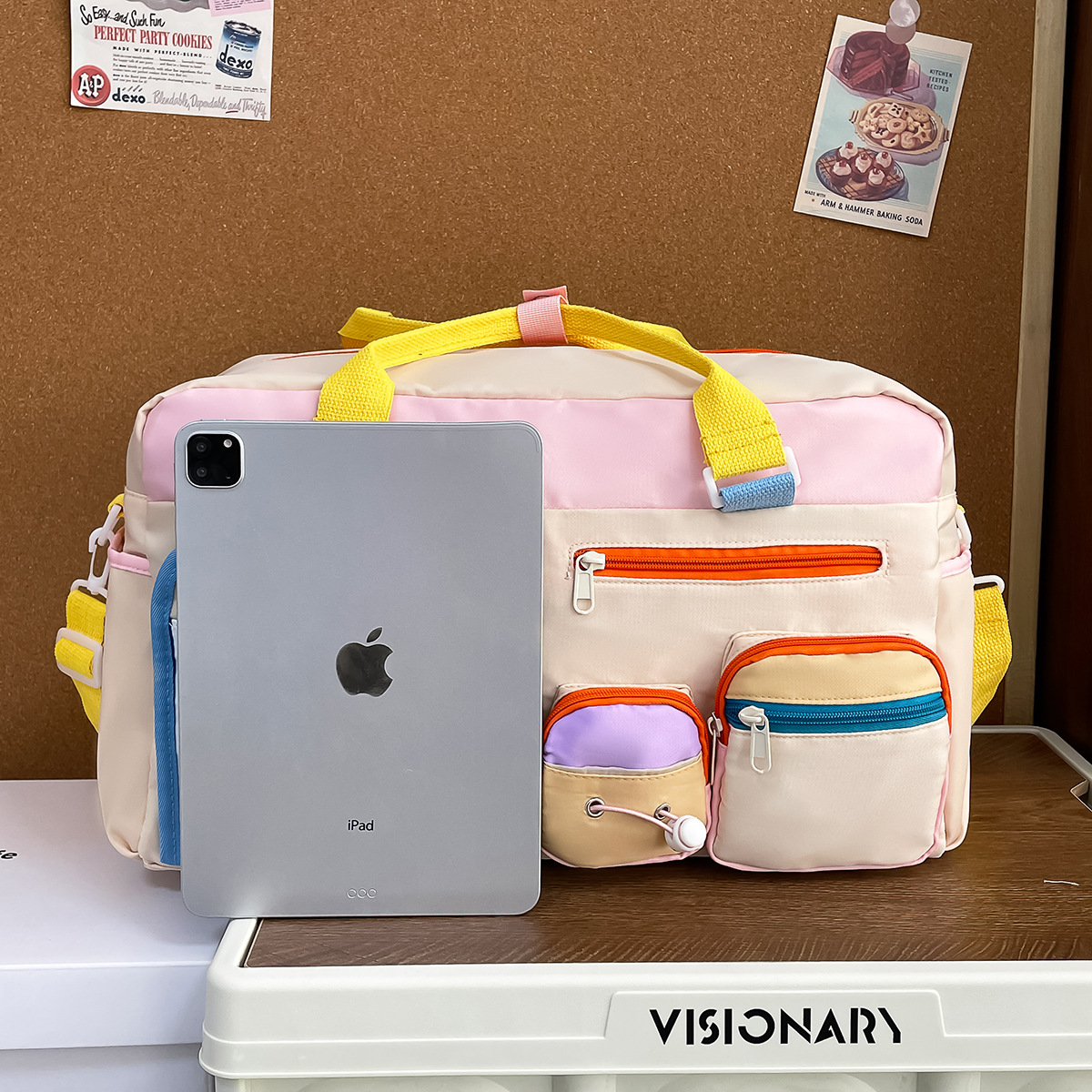 跨境新款撞色旅行包大容量短途手提多功能运动健身包单肩行李包女