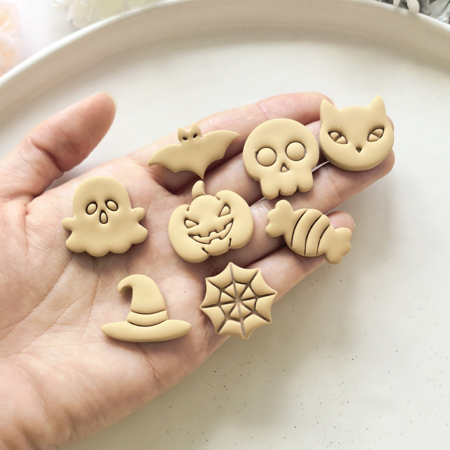 跨境万圣节幽灵蝙蝠糖果小猫蜘蛛网软陶粘土模具clay cutters