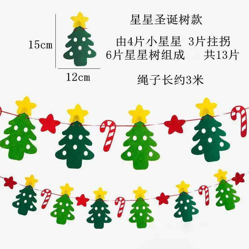 材质 | 无纺布 | | 颜色 | 圣诞树星星拉旗 |
