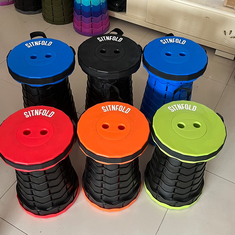 多巴胺伸缩折叠凳彩虹户外钓鱼便携式圆筒伸缩板凳儿童卡通塑料凳