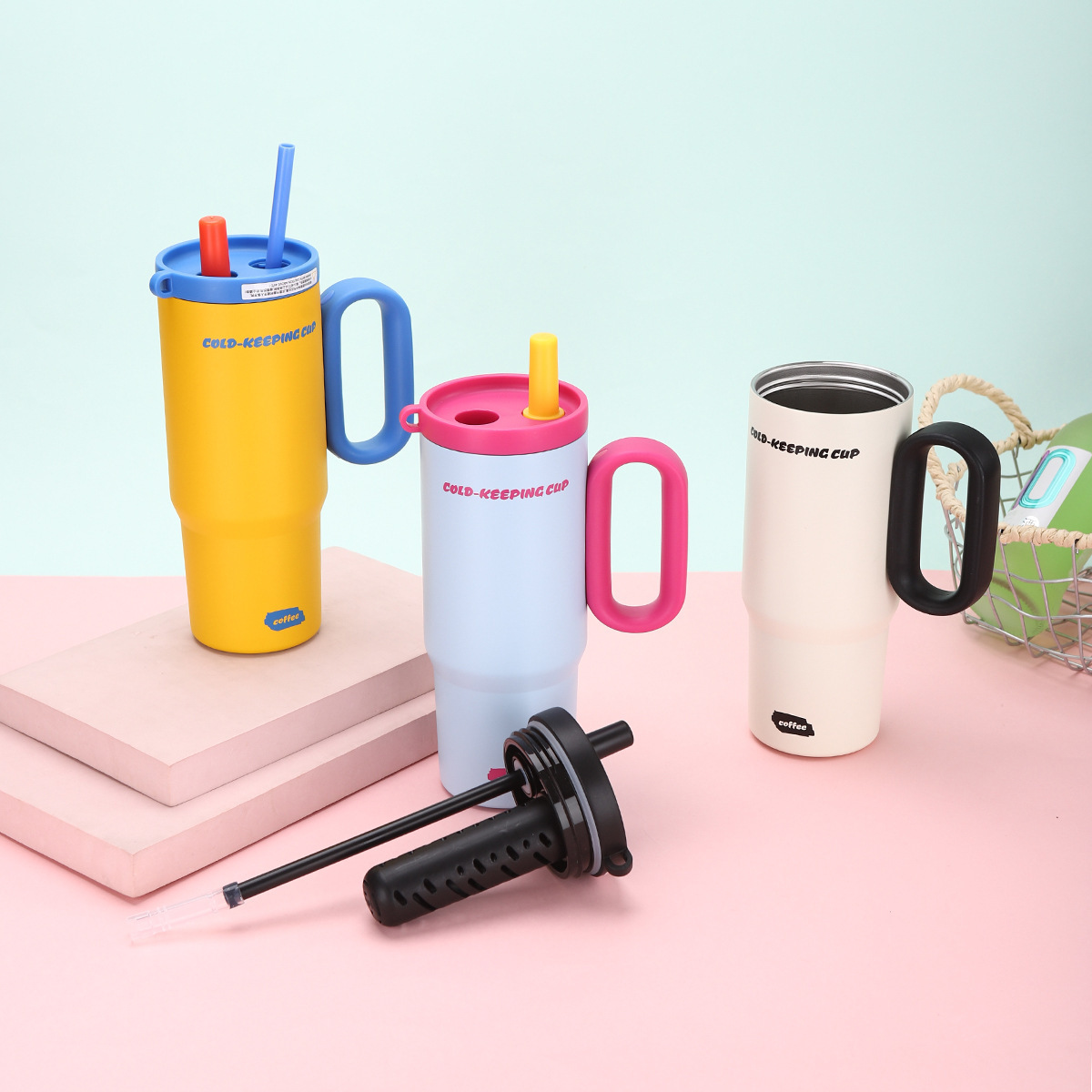 巨无霸手柄冰霸杯双层真空不锈钢316保温杯便携车载吸管汽车杯