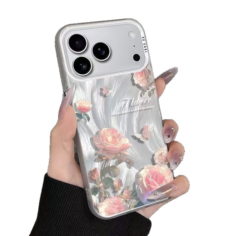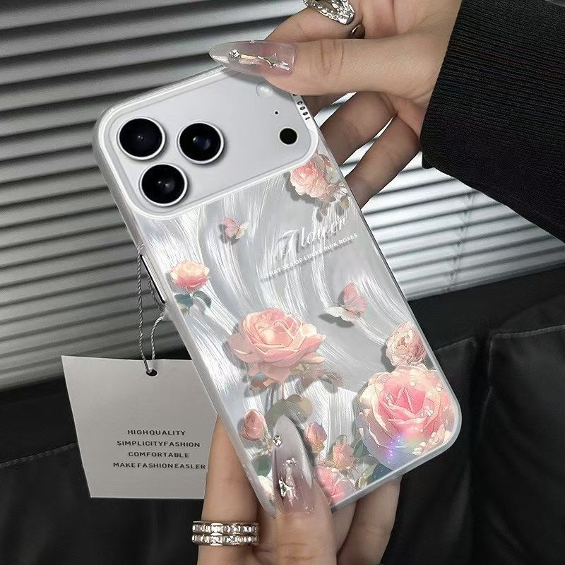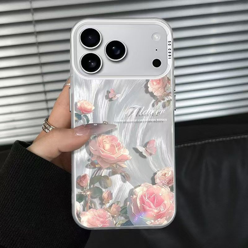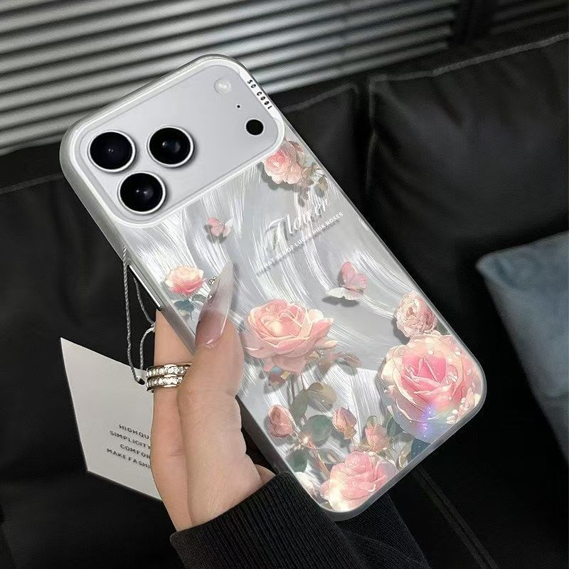 蝴蝶玫瑰适用苹果17手机壳新款17Air 彩银壳17Promax/16/15轻奢爆