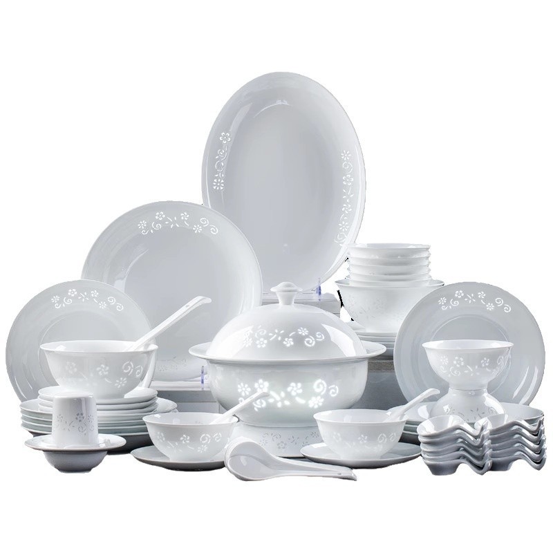 景德镇高白瓷玲珑餐具健康釉下彩碗玲珑瓷高温白瓷碗碟套装